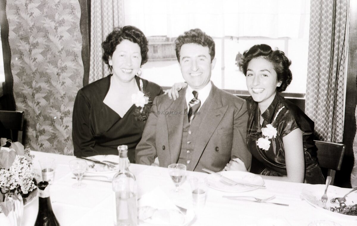 Een drietal deelnemers aan het banket van de kappers.Ze hebben er duidelijk plezier in !