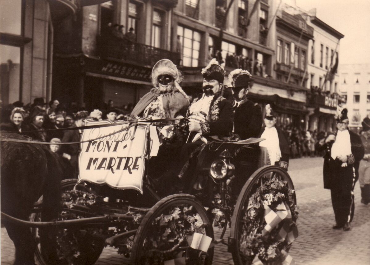 De groep nr.37 "Gemeentebestuur van Montmartre" met een open koets (calèche) in de carnavalstoet op het Wapenplein. In 1938 gaven enkele handelaars uit de Langestraat en omliggende straten hun wijk een nieuwe naam "Quartier Montmartre". Na de Tweede Wereldoorlog namen zij deel aan de cavalcadestoet. De naam Monmartre raakte in onbruik, maar nu opnieuw gekend.