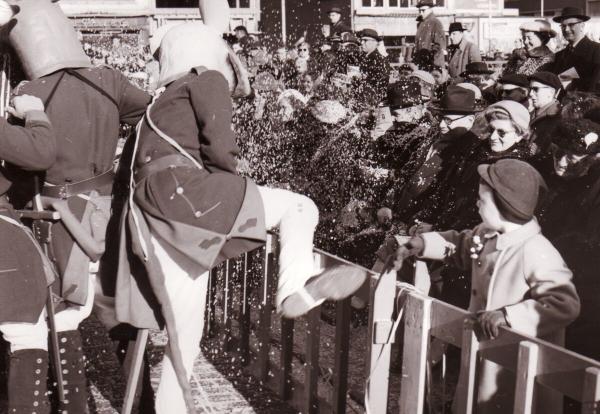 Een groep uit de 2e Grote Rattestoet, of de 13e Carnavalstoet op het Wapenplein.
