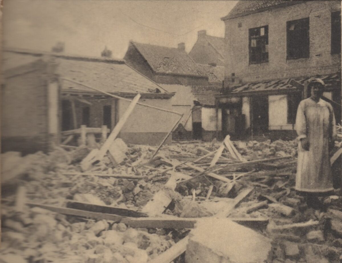 Nels. - Ostende - Rue Archiduchesse, le 16 mai 1918. Effet d'un obus. Archduchess street, on the 16 th May 1918. Effect of a bomb. - Map 29E-07f