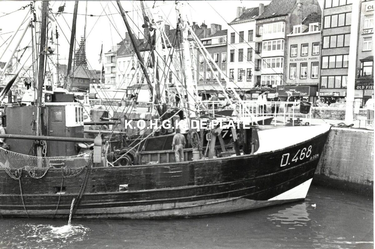 Formaat : 13 x 18 cm. - O.468 "Aran" aangemeerd in het Montgomerydok. In de achtergrond de Visserskaai.