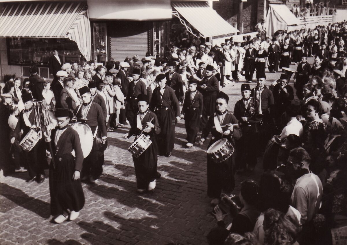 Een folkloregroep uit Nederland in typische klederdracht in de Kapellestraat.