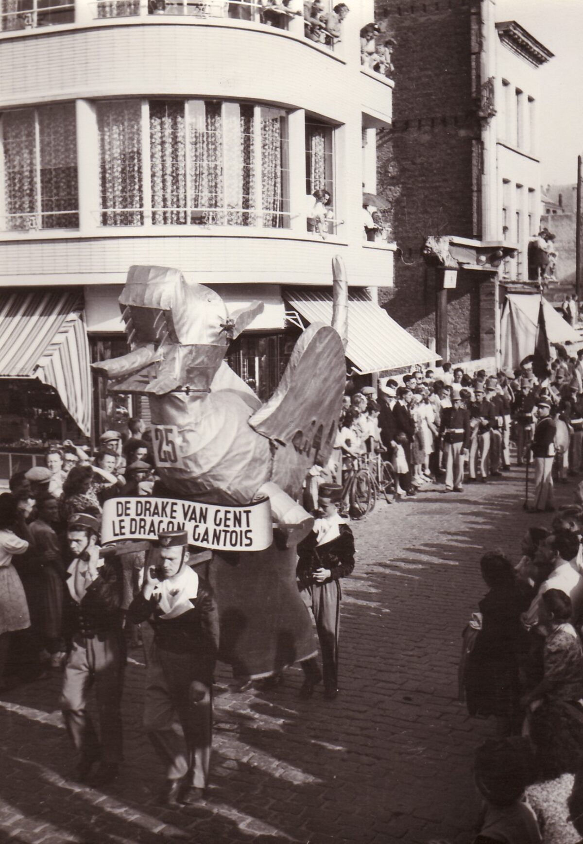 De folkloregroep "De Drake van Gent - Le Dragon Gantois" in de Kapellestraat