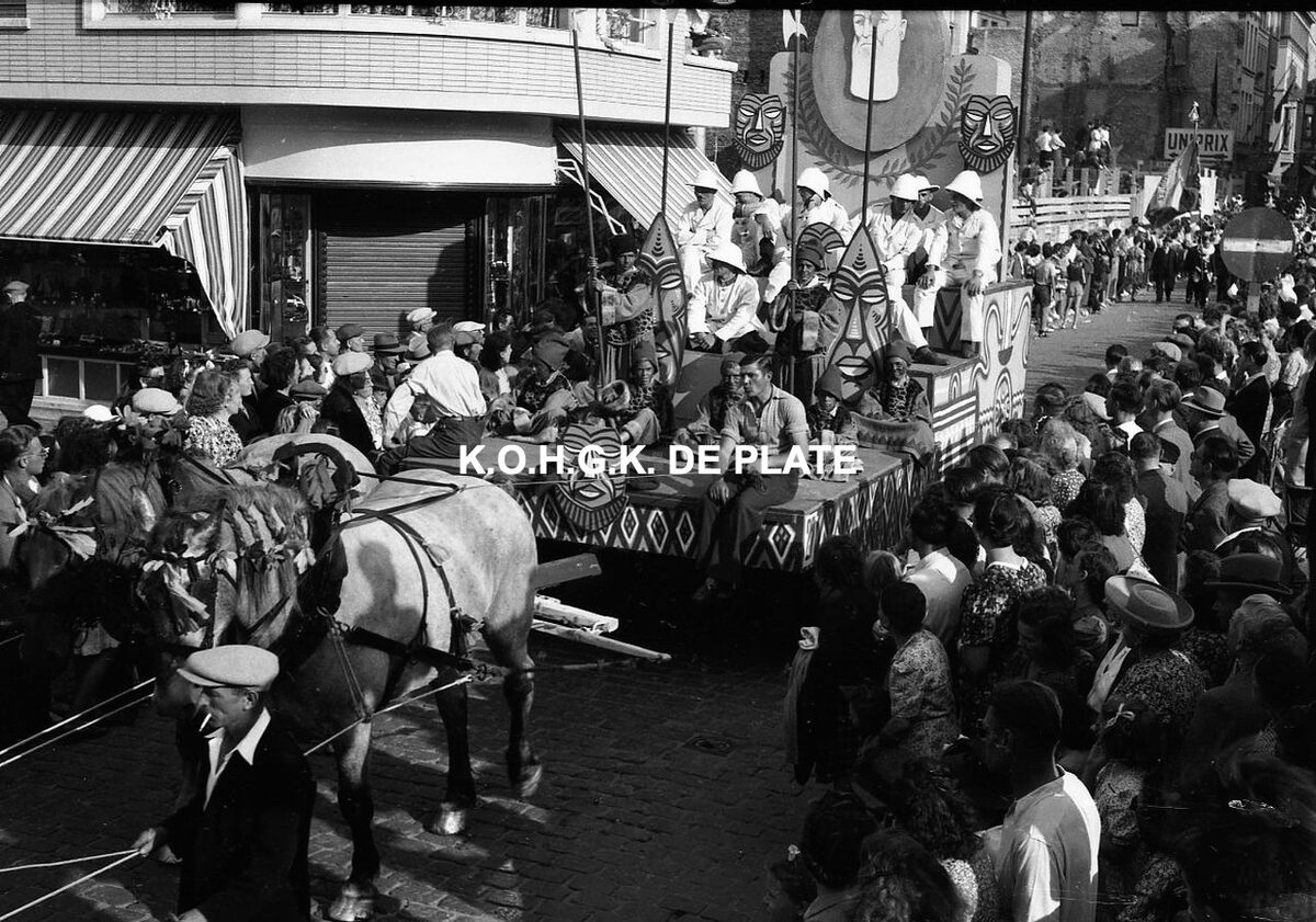 Foto : Folklorestoet naar aanleiding van de bruiloft van de Oostendse reuzen Tone en Wanne Afbeeldingen Negatief : 4 x 6,5 cm. - Trefwoorden FOTO LUC STOETEN FOLKLORE Inventarisnummers 2019/1385 Datum van 16/ 08/ Jaar van 1947 Datum via externe bron Off Geactiveerd Uit Vertonen za, 26/06/2021 - 01:45 - za, 10/07/2021 - 01:45 Datum bij benadering Uit