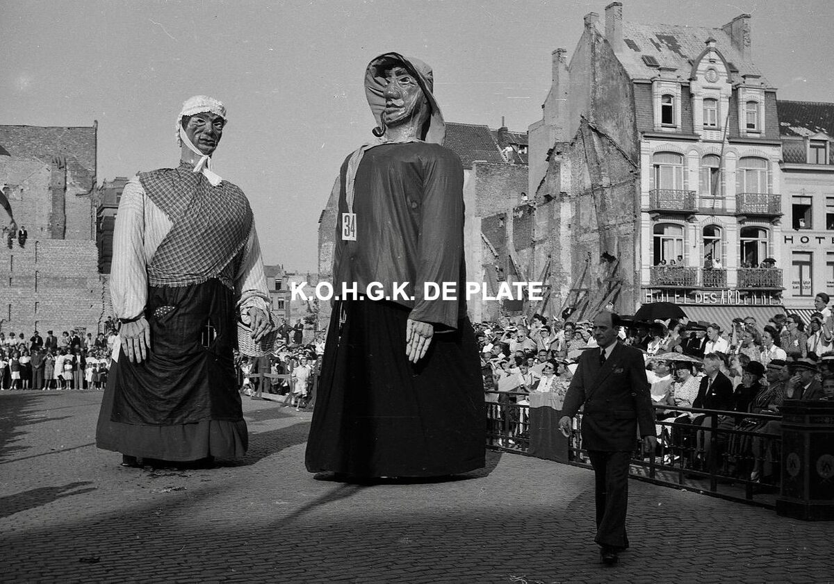 Foto : Folklorestoet naar aanleiding van de bruiloft van de Oostendse reuzen Tone en Wanne Afbeeldingen Negatief : 4 x 6,5 cm. - Trefwoorden FOTO LUC STOETEN FOLKLORE Inventarisnummers 2019/1404 Datum van 16/ 08/ Jaar van 1947 Datum via externe bron Off Geactiveerd Uit Vertonen za, 26/06/2021 - 01:45 - za, 10/07/2021 - 01:45 Datum bij benadering Uit