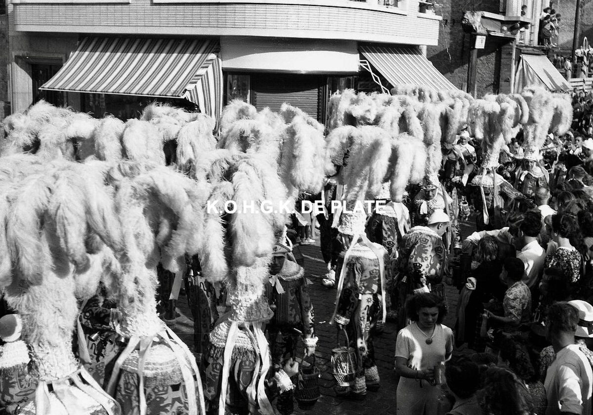 Foto : Folklorestoet naar aanleiding van de bruiloft van de Oostendse reuzen Tone en Wanne Afbeeldingen Negatief : 4 x 6,5 cm. - Trefwoorden FOTO LUC STOETEN FOLKLORE Inventarisnummers 2019/1426 Datum van 16/ 08/ Jaar van 1947 Datum via externe bron Off Geactiveerd Uit Vertonen za, 26/06/2021 - 01:45 - za, 10/07/2021 - 01:45 Datum bij benadering Uit