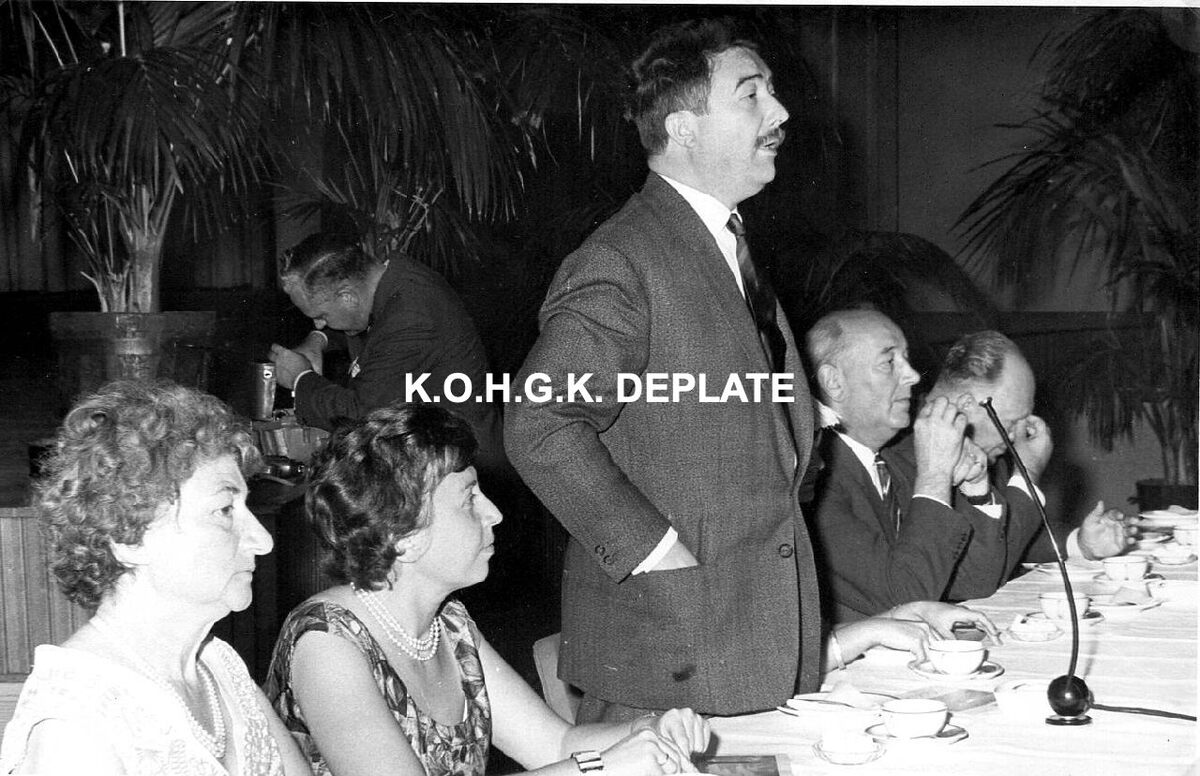 Formaat : 13 x 18 cm. - Schepen Roger De Kinder verwelkomt de gasten. Naast hem rechts, schepen Kamiel Dehouck.