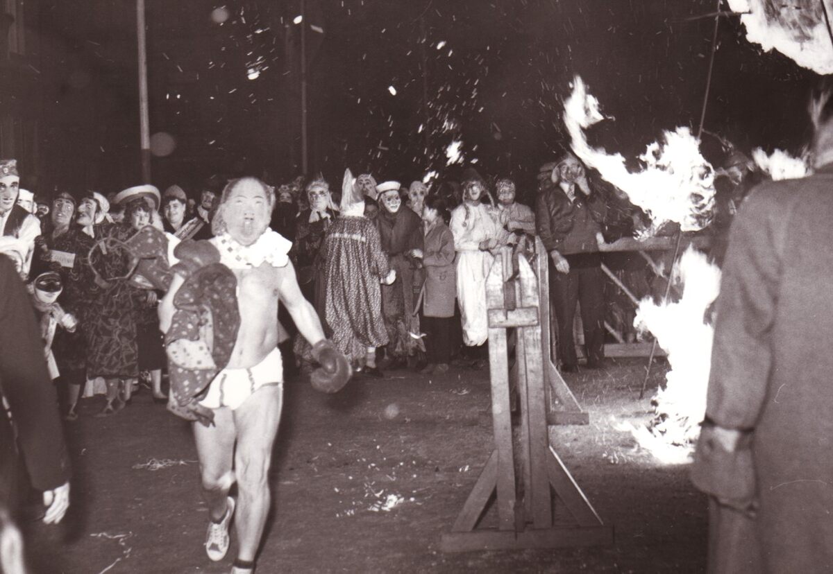 Een stropop wordt verbrand op het Mijnplein na afloop van de cimateirestoet.