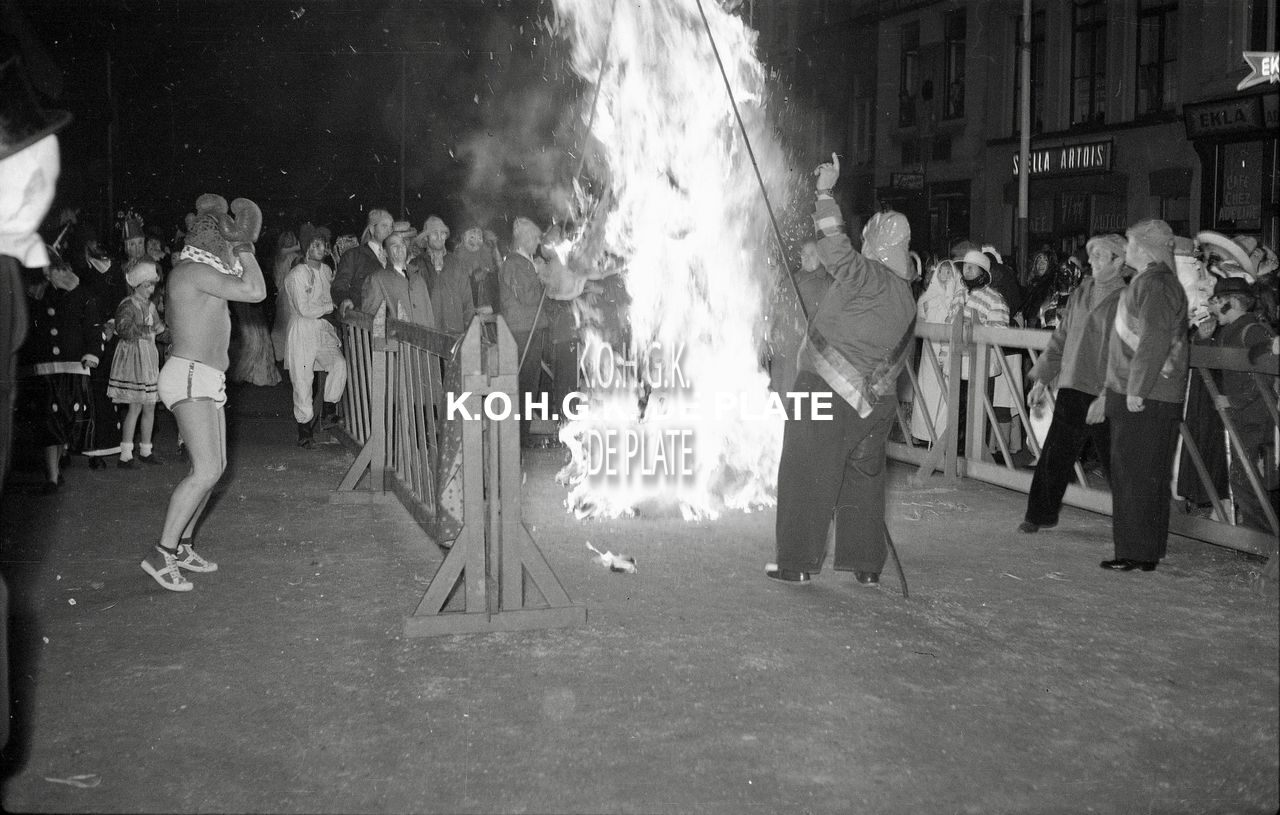 Negatief : 6 x 9 cm. - Verbranden van de pop na afloop van de stoet
