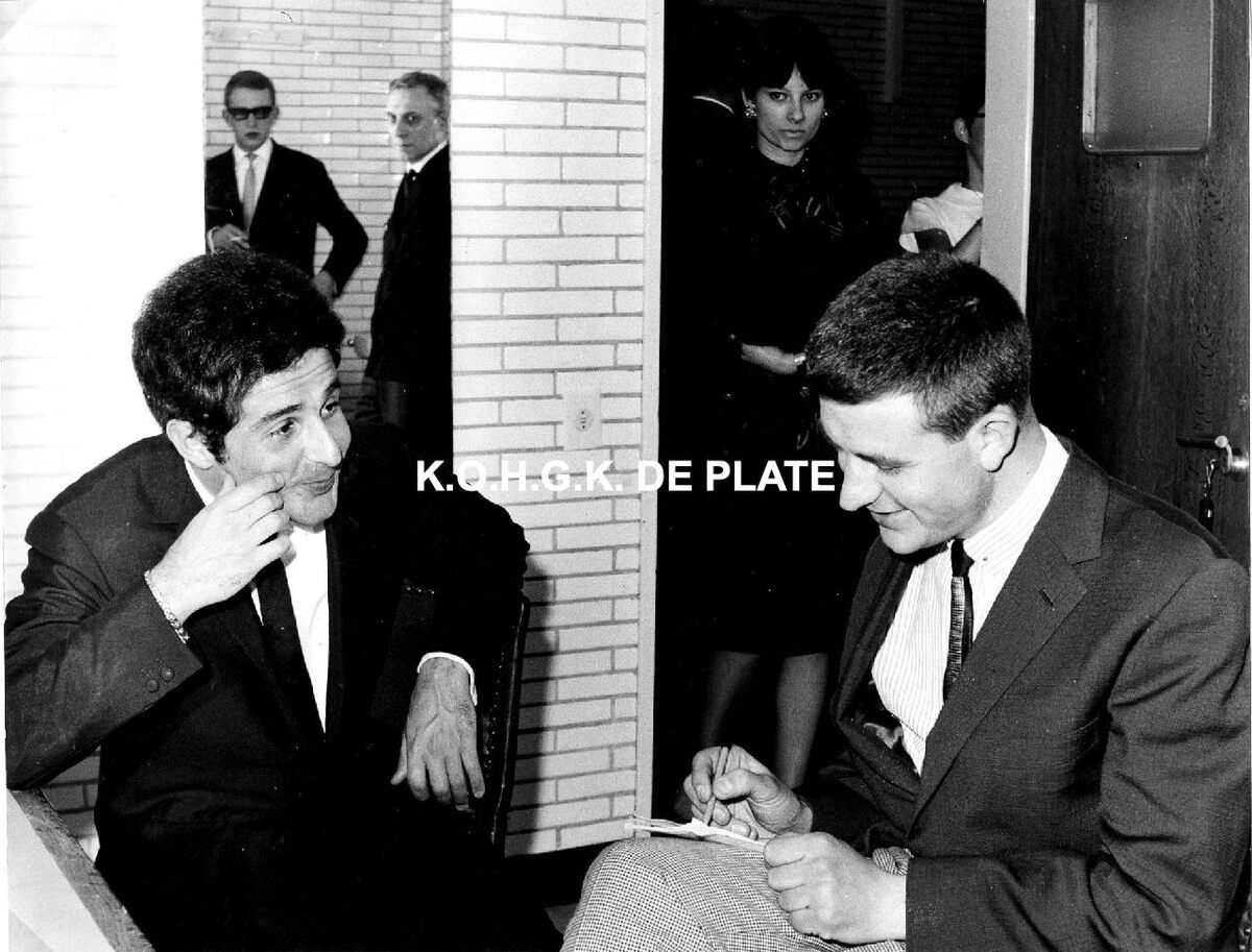 Formaat : 18 x 24 cm. - Richard Anthony in zijn loge in gesprek met een journalist.