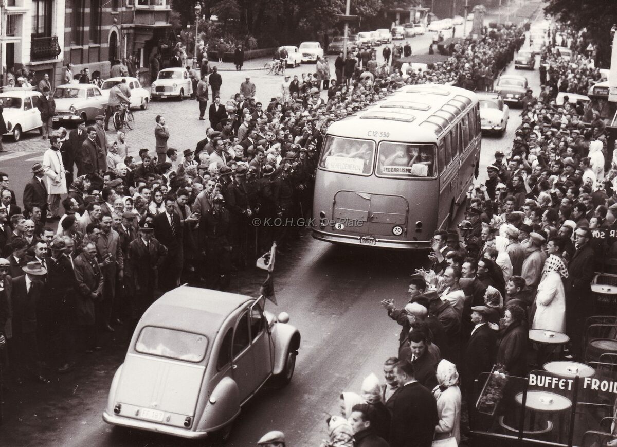 Tijdens een vlaams nationale gemotoriseerde betoging rijdt een bus met aanhangers van het federalisme de Koninginnelaan in nabij Petit Paris. Links, de "Square Stephanie".