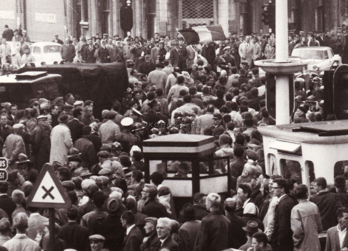 Een volgelopen Petit Paris tijdens de Vlaams nationale manifestatie "Mars op de Kust" van 18/08/1963. Rechts vooraan, het frietkot dat toen midden het plein stond.