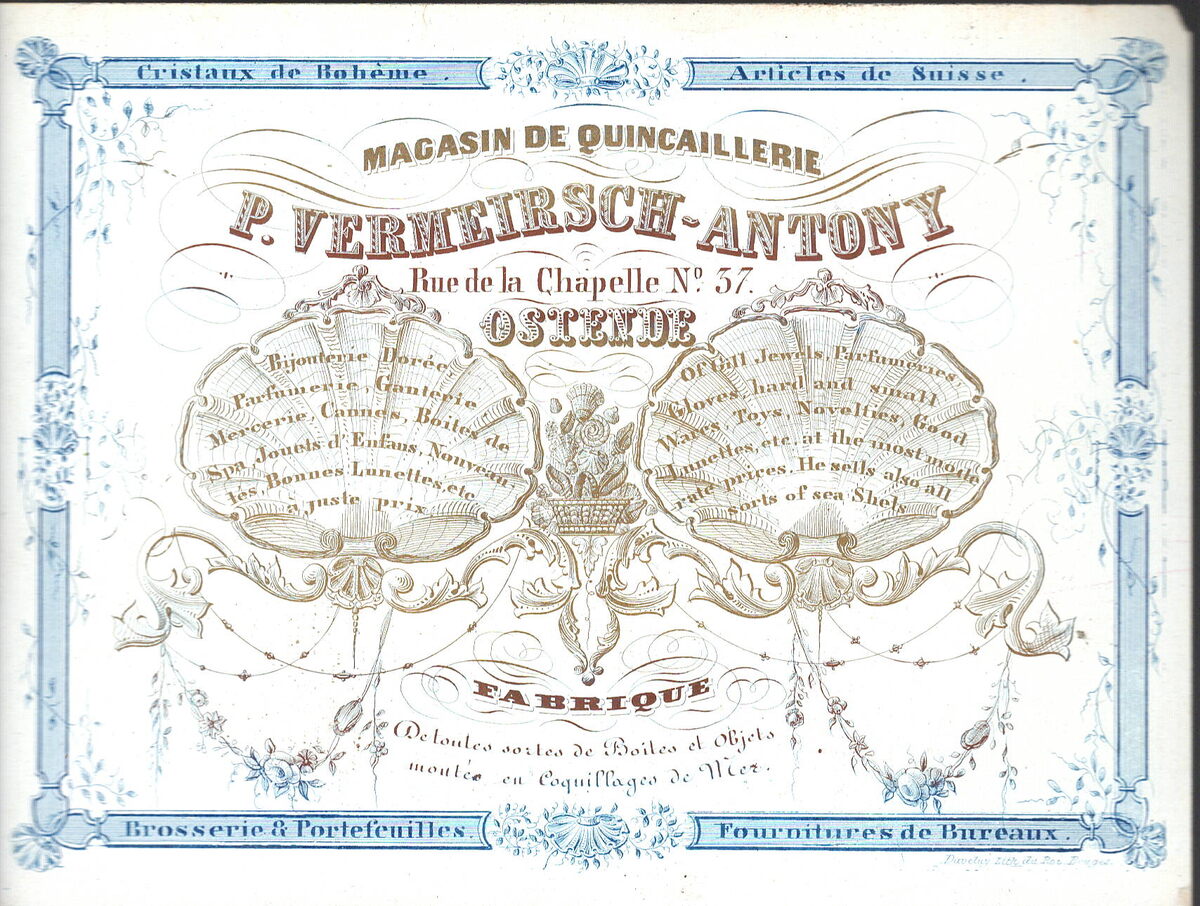 Rue de la Chapelle N° 37 OSTENDE, Fabrique, Cristaux de Bohème - Article deSuisse - Brosserie & Portefeuilles - Fournitures de Bureaux