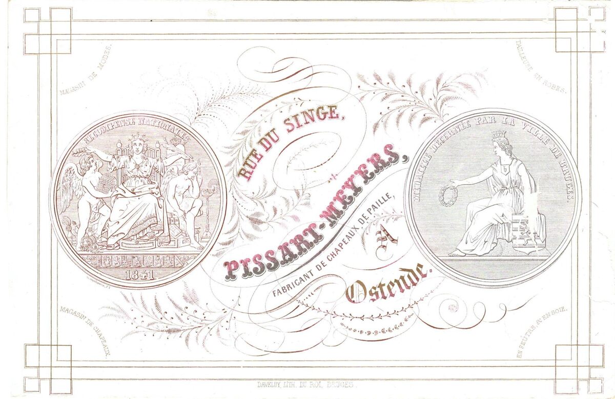 Formaat : 14,1 - 21,7 cm. - Pissart-Meyers, Fabricant de chapeaux de paille, Rue du Singe (huidige Brabantstraat).