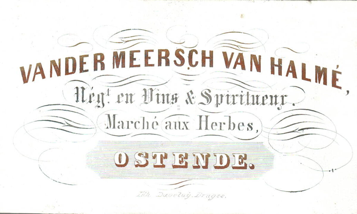 Formaat : 53 x 90 mm. - Vander Meersch Van Halmé Nég. en Vins & Spiritueur Marché aux Herbes Ostende.