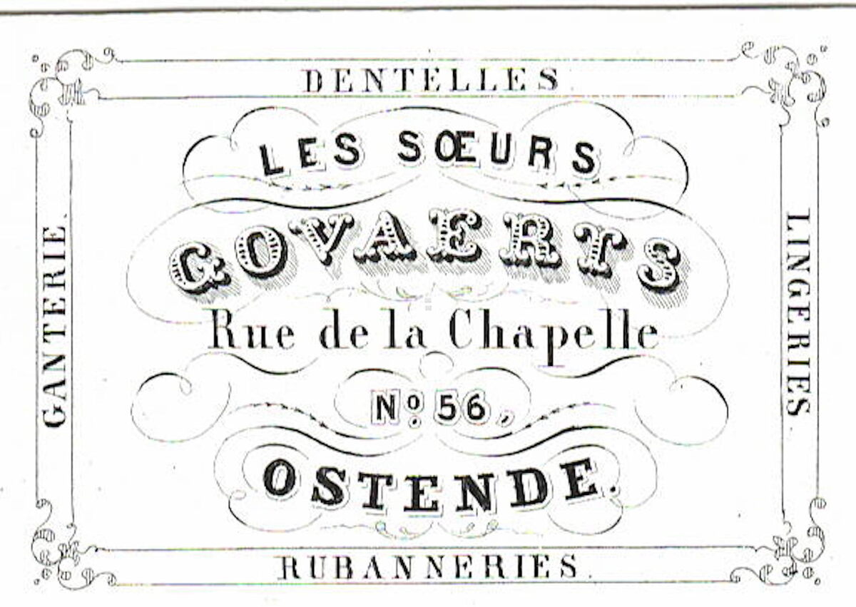 Formaat : 3,1 x 5,1 mm. - Les soeurs Govaerts, Rue de la Chapelle N° 56 Ostende. Dentelles, Lingeries, Rubanneries, Ganterie.