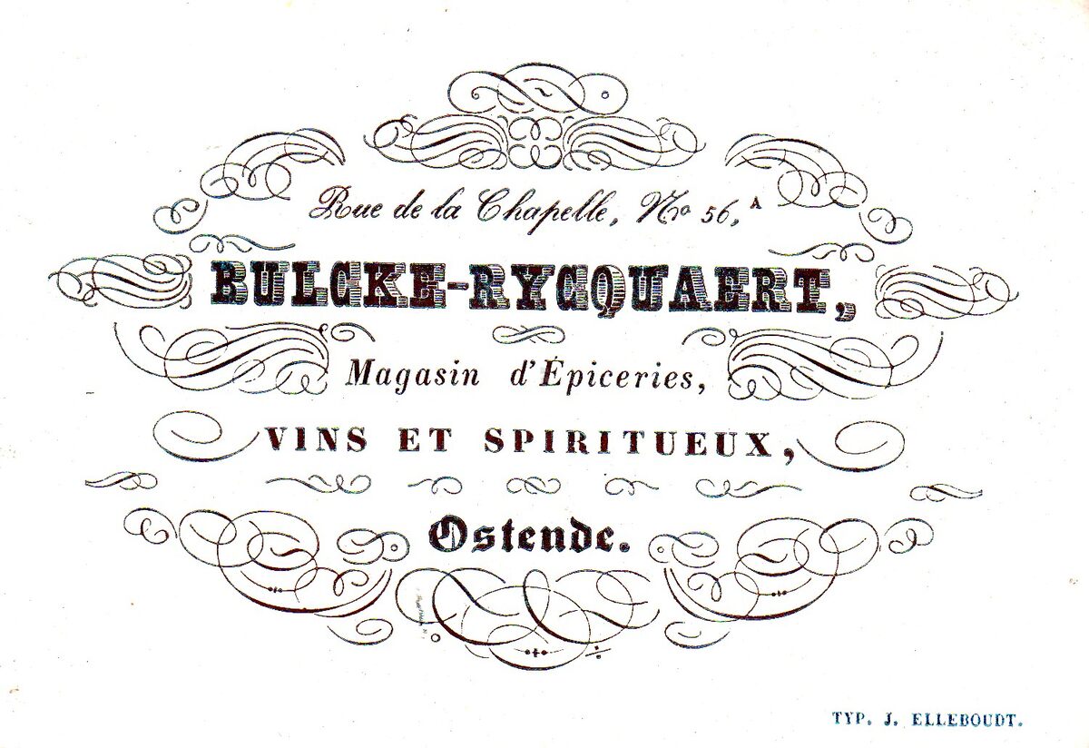 Afmeting : 83 x 130 mm. - Bulcke-Rycquaert, Magasin d'Epiceries Vins et Spiritueux, Rue de le Chapelle N°36 à Ostende.