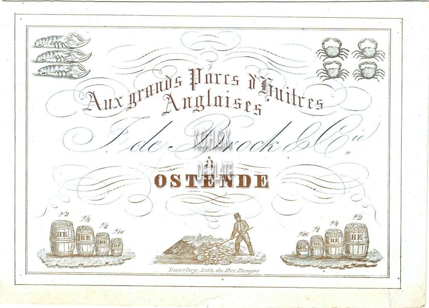 Formaat : 8,6 x 12,1 cm. - Aux grands Parcs d'huitres Anglaises J.de Brock & cie à Ostende.