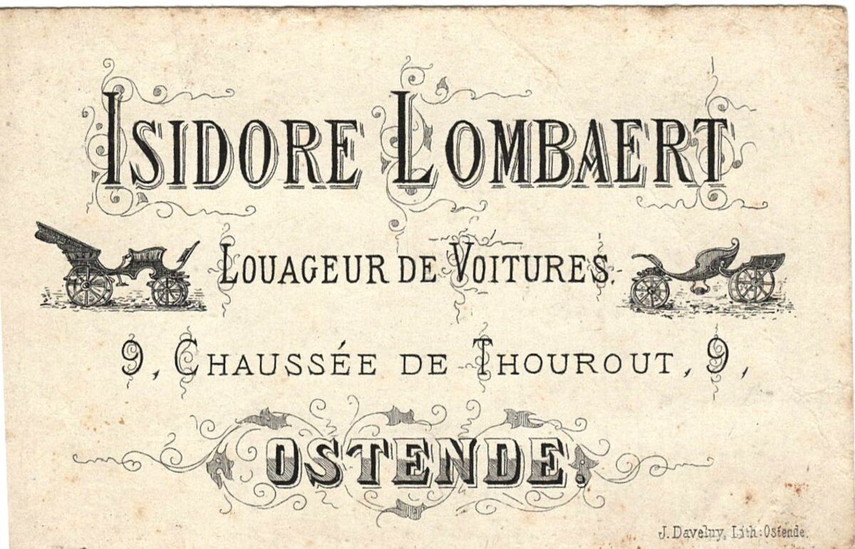 Formaat : 6,1 x 10 cm. - Isidore Lombaert, Louageur de Voitures 9, Chaussée de Thourout, 9, Ostende.