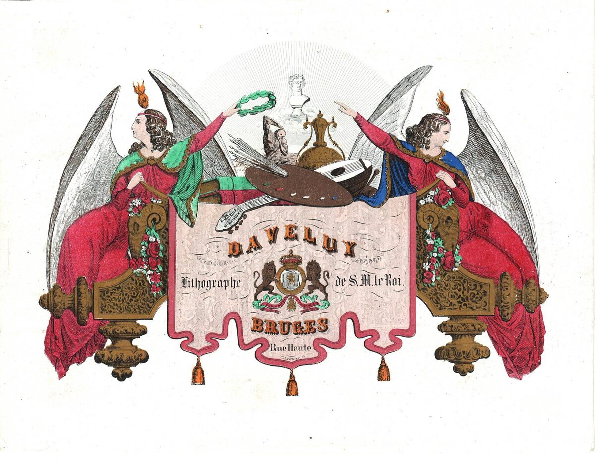 Formaat : 13,5 x 17,6 cm. - Daveluy, Lithographe de S.M le Roi. Bruges Rue Haute.