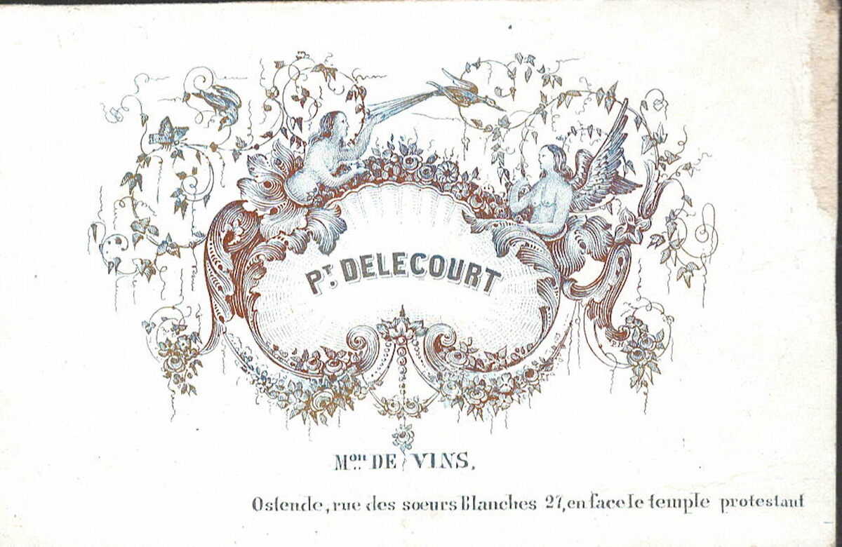 Formaat : 5,2 x 8,2 mm. - Pt. Delecourt, Mon. De Vins. Ostende Rue des Soeurs Blanches 21 en face le temple protestant.