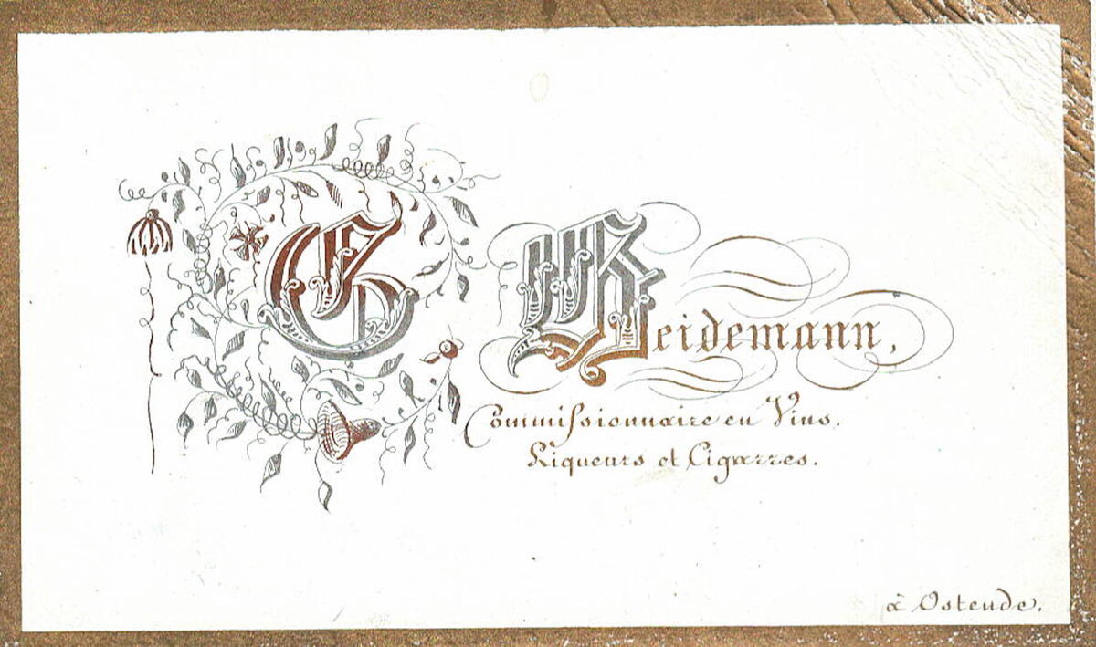 Formaat : 5,2 x 8,5 mm. - G. Heidemann, Commissionnaire en Vins, Liqueures et Cigares à Ostende;