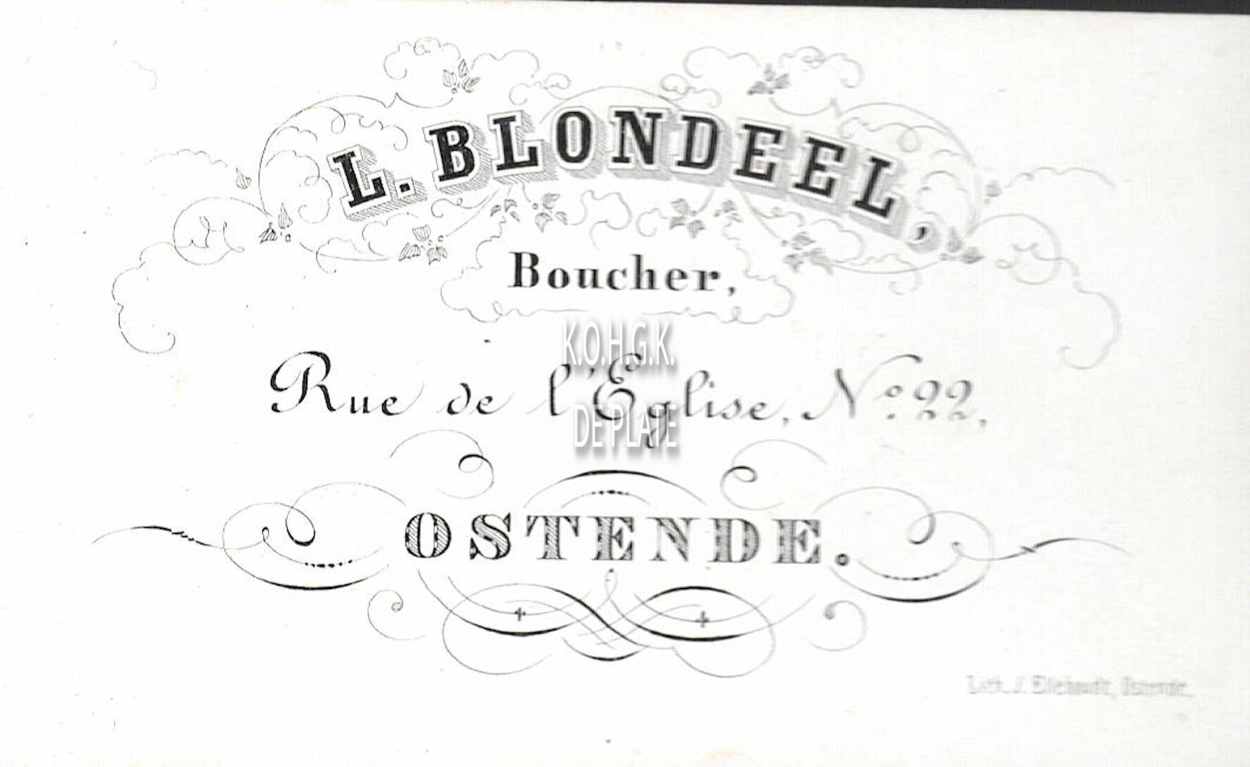 Formaat : 5,7 x 9,2 cm. - L. Blondeel; Boucher, Rue de l'Eglise N° 22 Ostende.