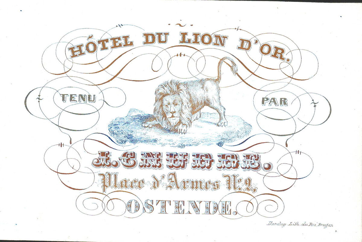 Formaat : 7,8 x 11,7 cm. - Hôtel du Lion d'Or tenu par J. Cnudde Place - d'Armes N° 2 - Ostende.