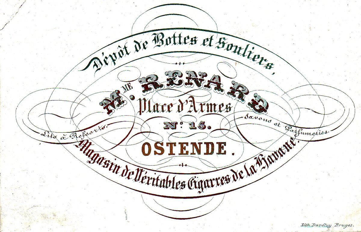 Dépôt de Bottes et Souliers Mme Renard Place d'Armes N° 15 Ostende.