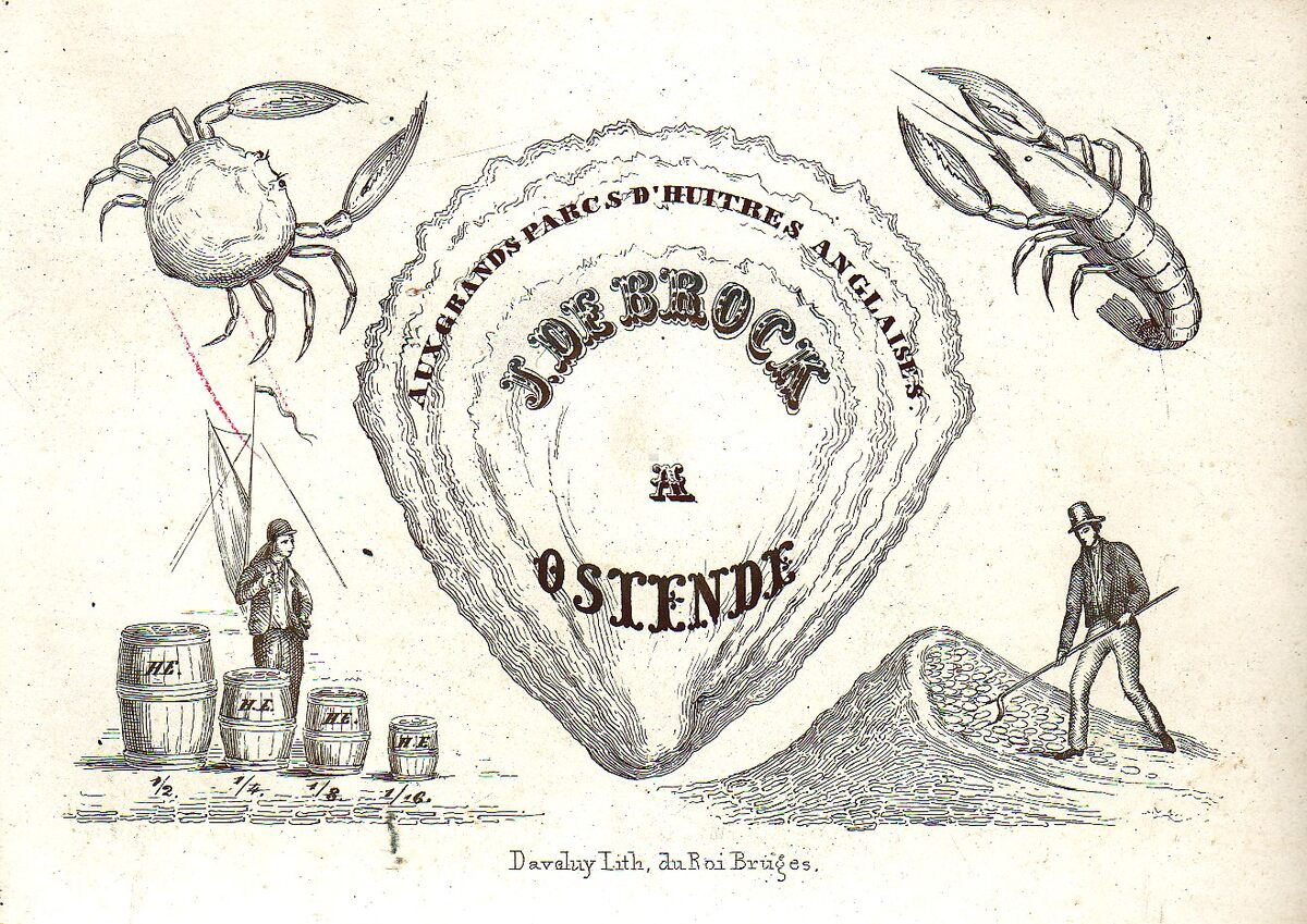 Formaat : 8 x 11,5 cm. - Aux Grands Parcs d'Huitres Anglaises. J. de Brock à Ostende.