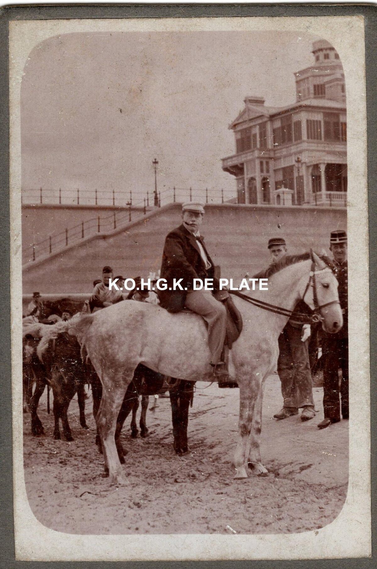 Formaat : 9,5 x 6 cm. - Paardrijden op het strand nabij het Koninklijk Chalet