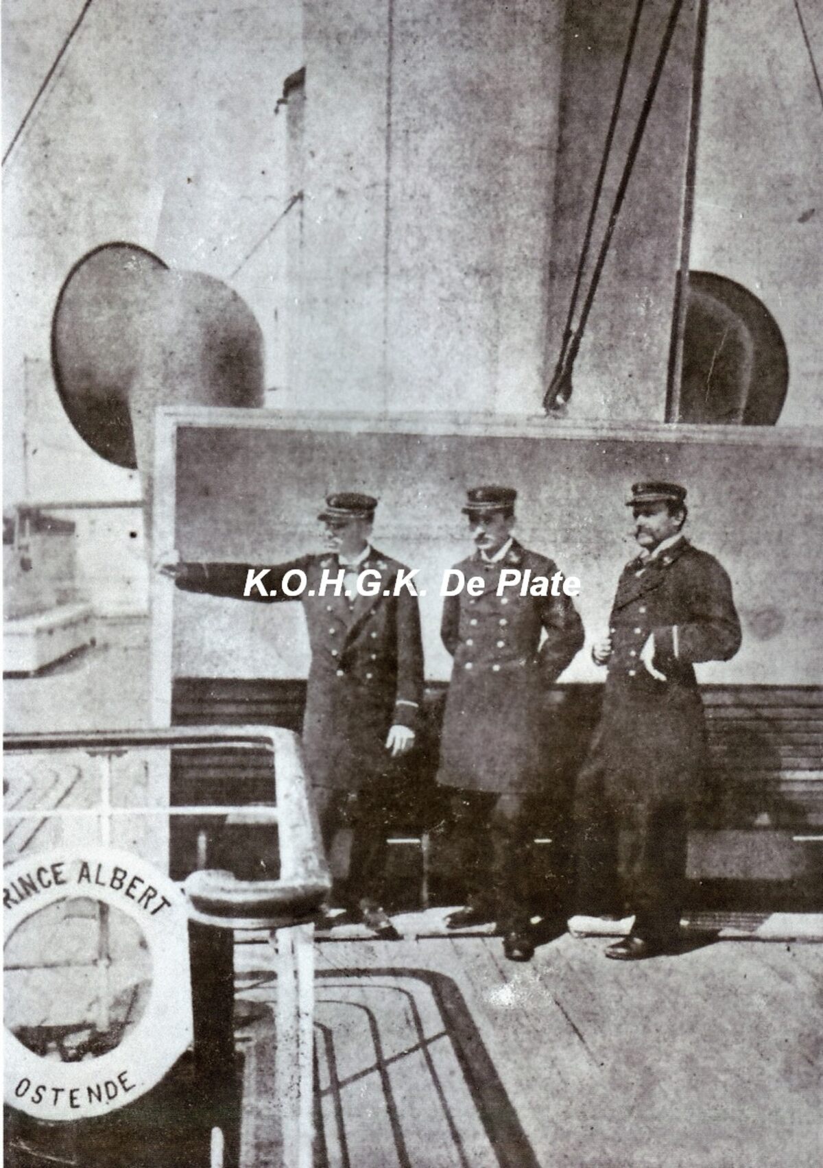 Afdruk, formaat : 21 x 29.5 cm. Van links naar rechts : luitenant Depiere L., commandant Servais C. en luitenant Rohaert
