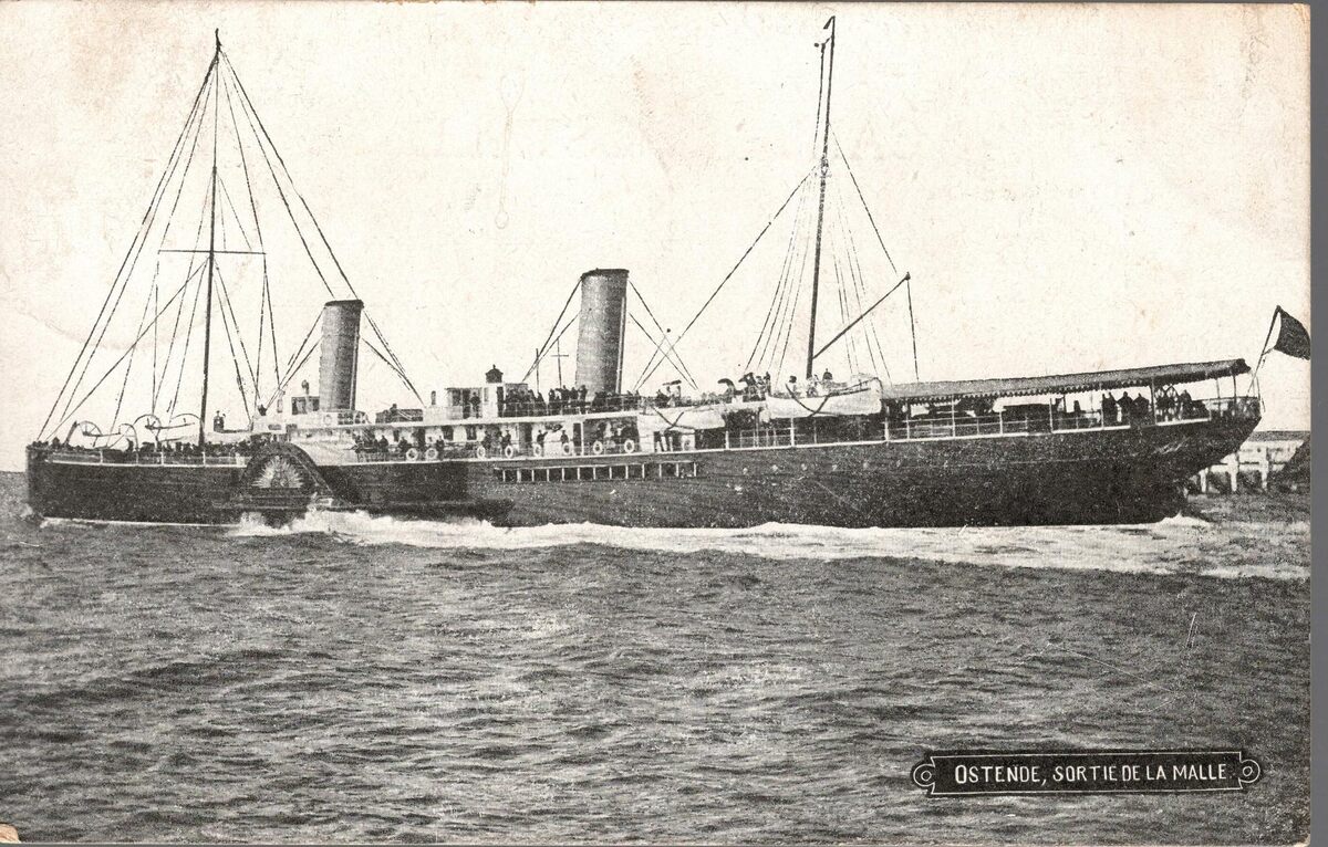 Ostende, sortie de la malle. - De pakketboot "Princesse Clémentine" een raderstoomboot, verlaat de haven van Oostende, op weg naar Dover