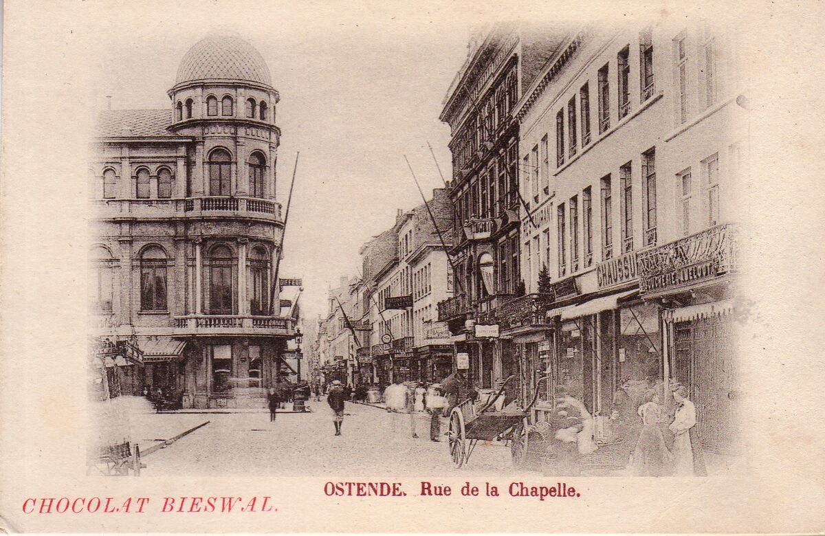 Ostende - Rue de la Chapelle. - Links, detail van het stadhuis op het Wapenplein
