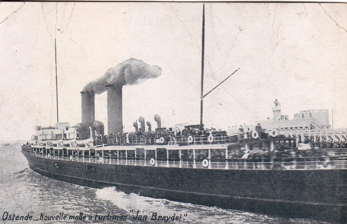Ed. V.G. [=Victor Grégoire], 42, avenue du midi, Bruxelles. - Nouvelle malle à turbines "Jan Breydel" (naamgeving niet juist). - De tijseinpost op het Ooststaketsel