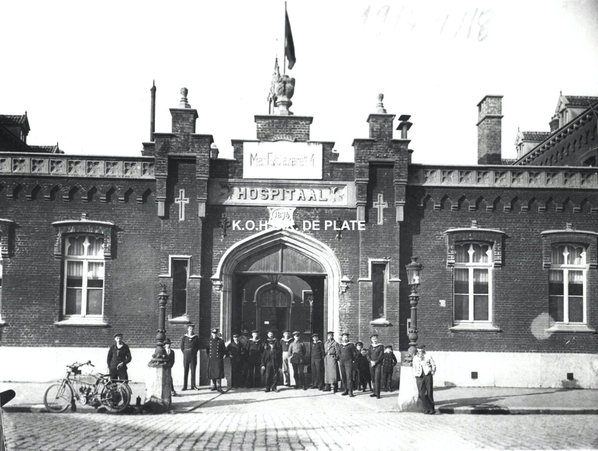 Formaat : 18 x 24 cm. - Het militair hospitaal werd eind november 1914 gesloten en het Burgerlijk Hospitaal werd samen met het Hôtel des Thermes omgevormd tot Marine-Feldlazarett Nr.4. Op 1 juli 1917 werd dit lazaret overgebracht naar Jabbeke. In : Oostende 14-18 : deel 1 / Ferdinand Gevaert, Freddy Hubrechtsen. 1995. p.123. Plate bib B228.