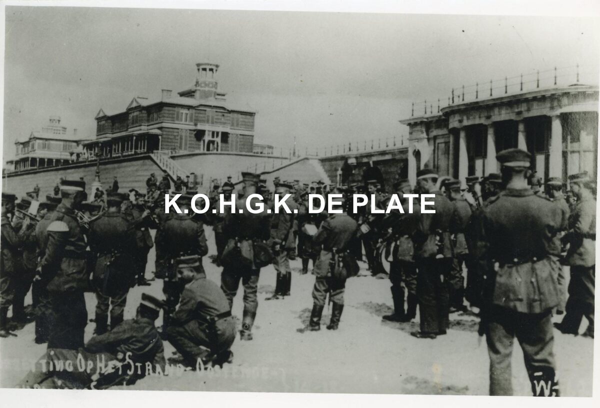 Formaat :18 x 13.cm. - Duitse militairen op het strand ter hoogte van de drie gapers.
