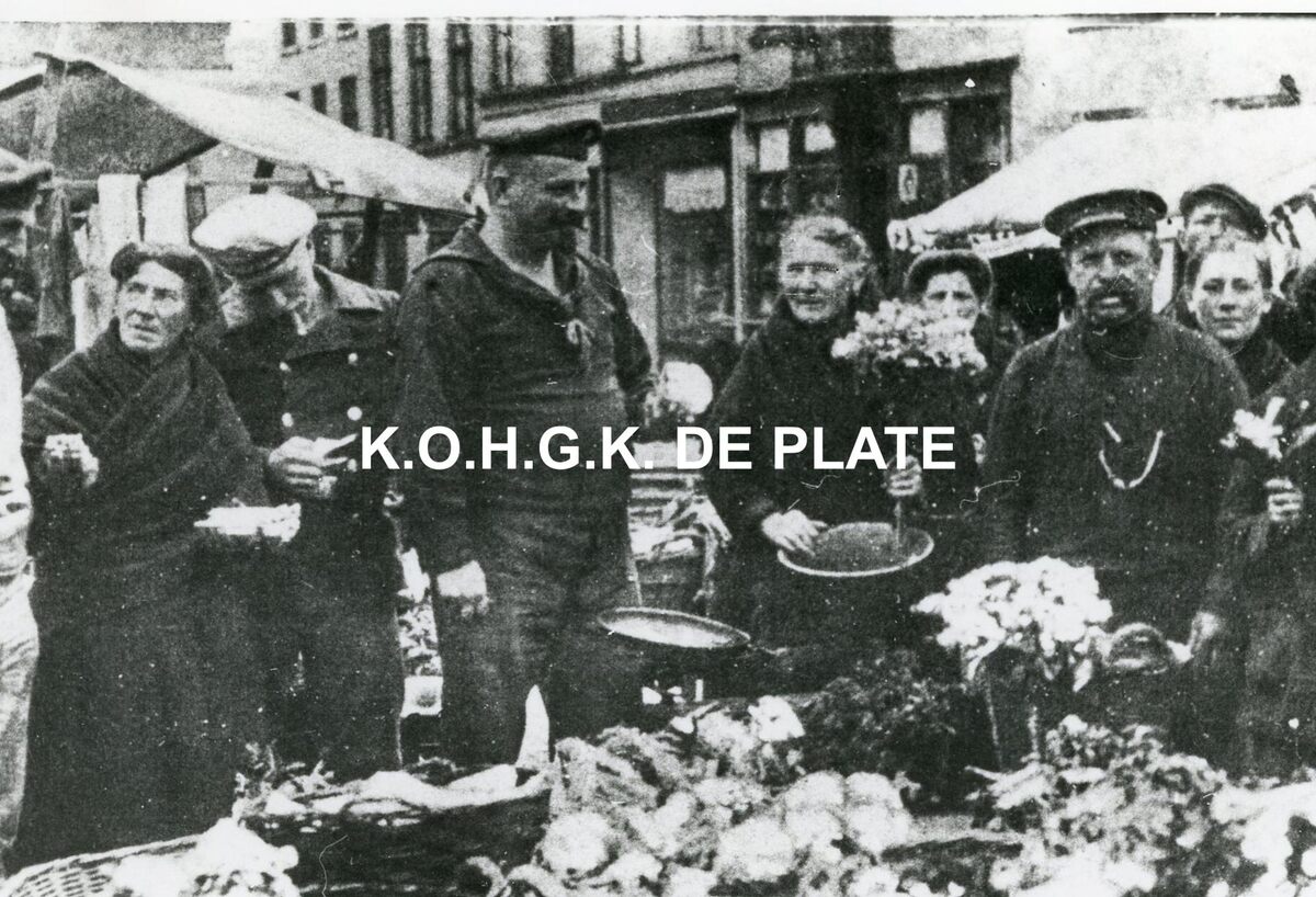Formaat : 15 x 10 cm. - Duitse militairen op de Groentemarkt