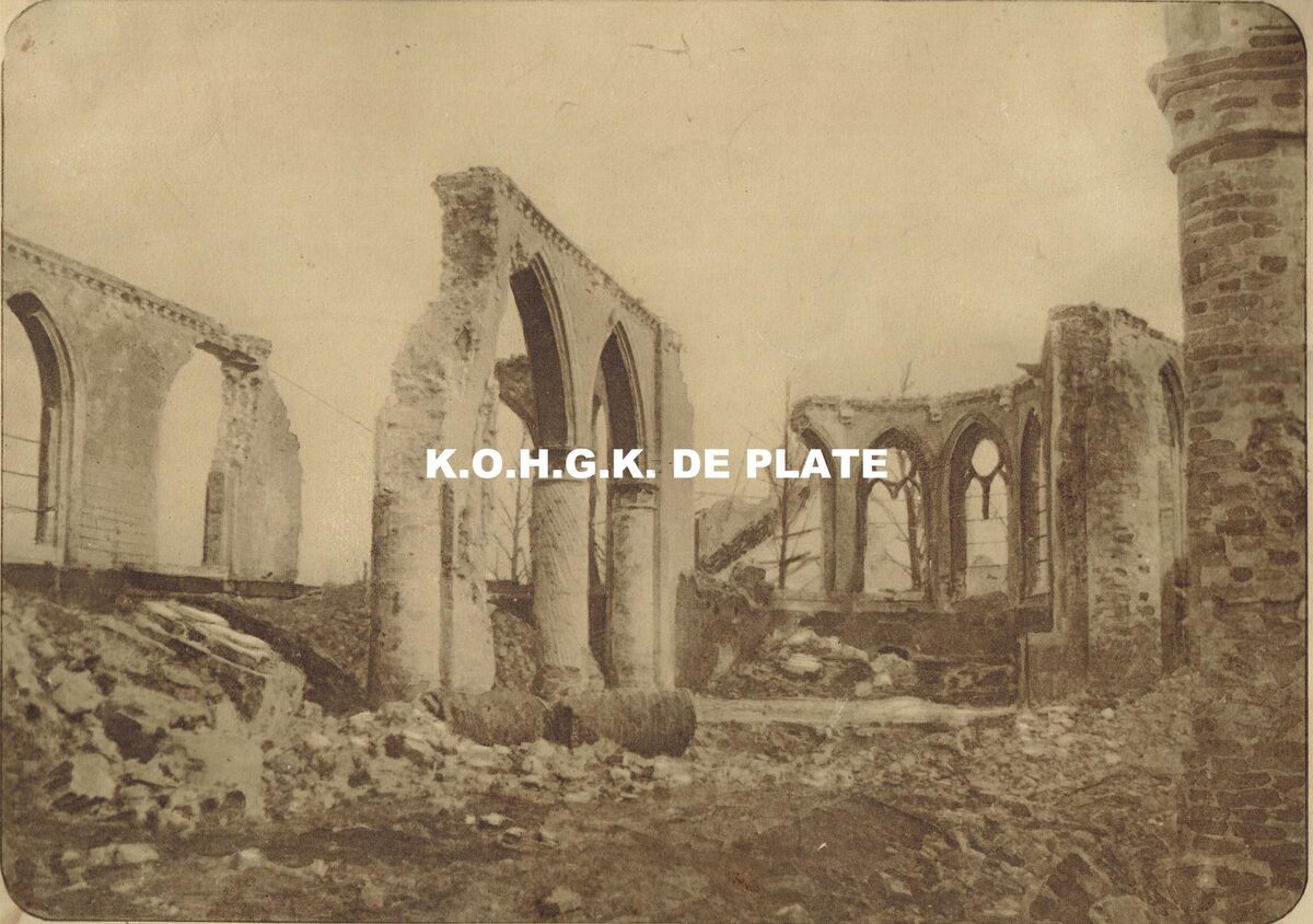 Formaat : 20 x 28 cm. - Ruines de l'églisé de Pervyse (février 1917)