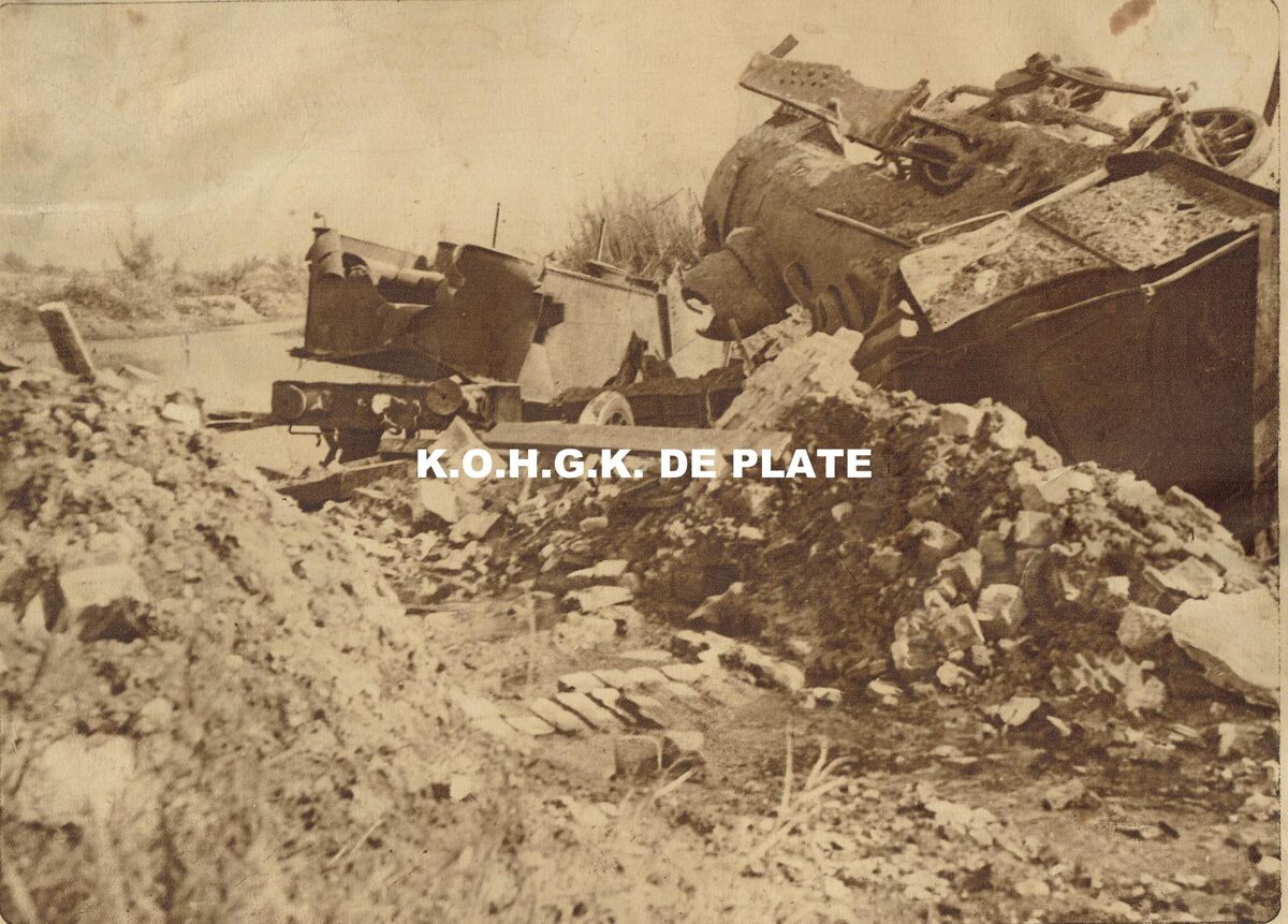 Formaat : 20 x 28 cm. - La célèbre locomotive de Caeskerke. - De locomotief werd door de Belgen als observatiepost gebruikt en verschillende keren door de Duitsers gebombardeerd.
