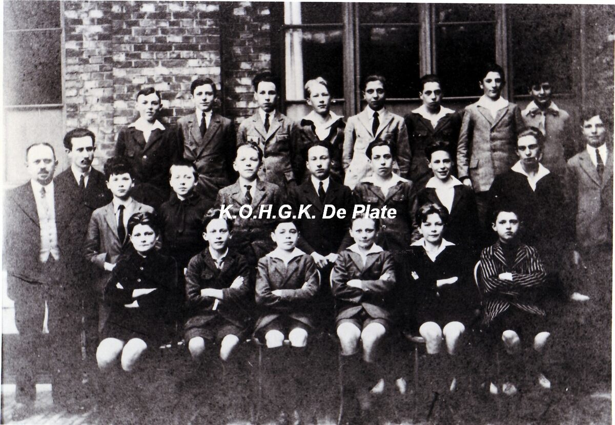 Foto 15 x 10. Vijfde grieks-latijnse van het Koninklijk Atheneum schooljaar 1923-1924. Zittend v.l.n.r.Lambrechts Pieter (werd later rector van de rijksuniversiteit Gent) - Dumont Abel - Debacker Edgard - Debrock Walter - (administrateur-generaal bij het ministerie van nationale opvoeding en cultuur)- pottiez Fernand - Travers Roland. Op de 2de rij Stappers Antoine (studieprefect) - ? - Bottemane Ghislain(muzikant) - Delange Raymond - Maertens Jan (dokter in de geneeskunde)- Simon Marcel (dokter in de geneeskunde) - Deswaef André (zaakvoerder) - Everaerts Pierre - Dejonge - Billiet André.
