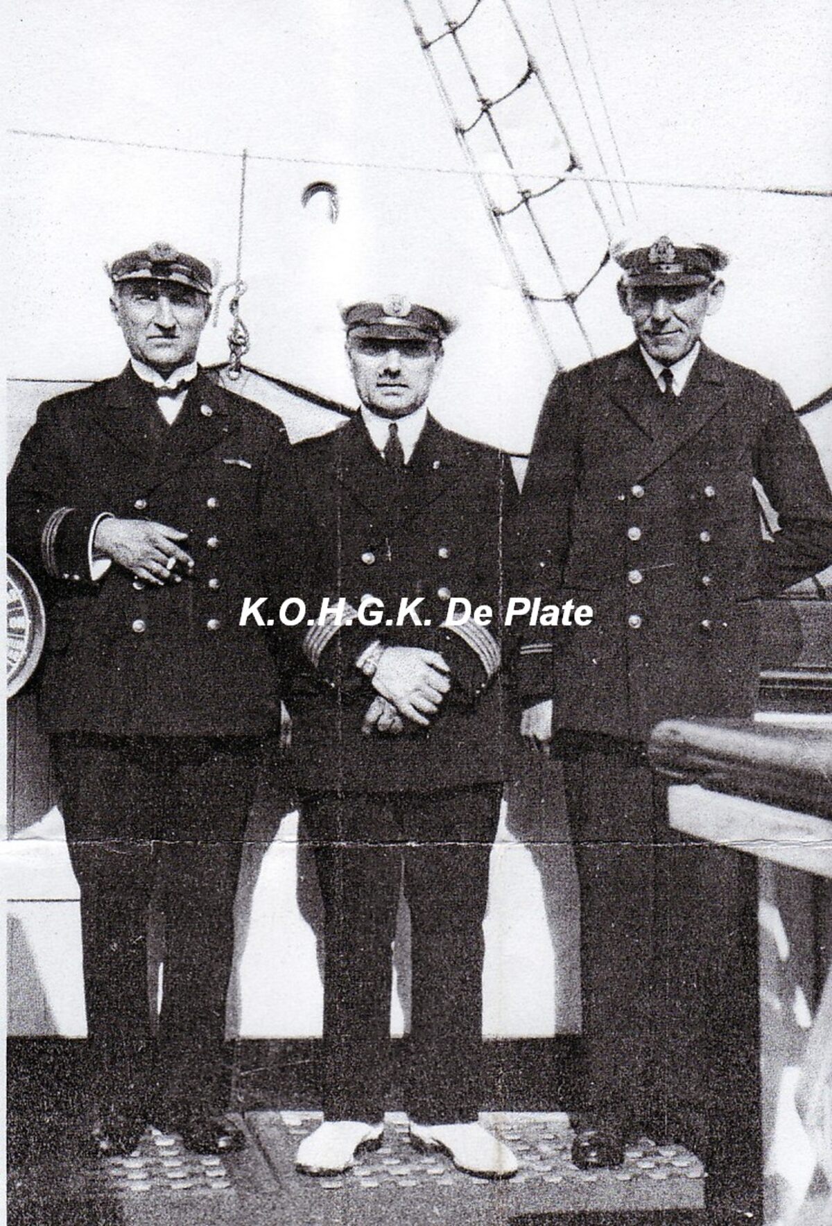 Afdruk, formaat : 29,5 x 21 cm. Met van links naar rechts : Miny Fr. (luitenant), Piette H. (commandant) en Tanghe Ch., (luitenant).