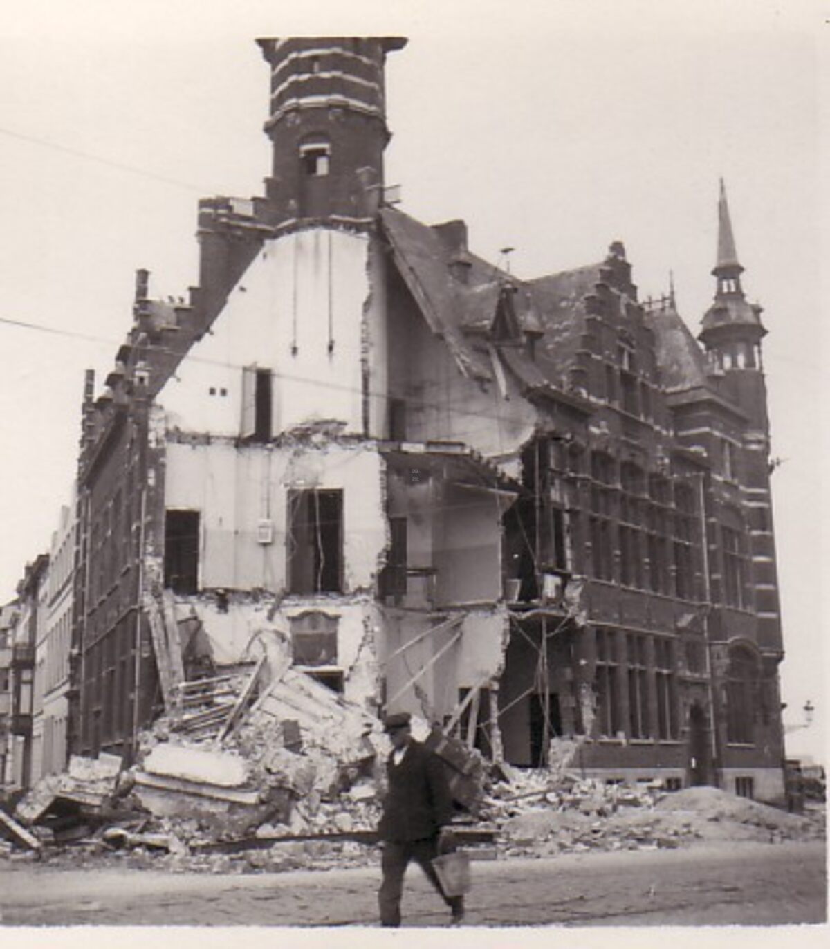 Foto : 6.5 x 6.5 cm. - Op de hoek Vindictivelaan en Zuidstraat was het Zeevaartcommissariaat of "Pilotage" opgetrokken in neo-vlaamse renaissancestijl in 1898-1899, naar het ontwerp van architect C. Dewulf (Brugge). Beschadigd in de Tweede Wereldoorlog en afgebroken in 1990.
