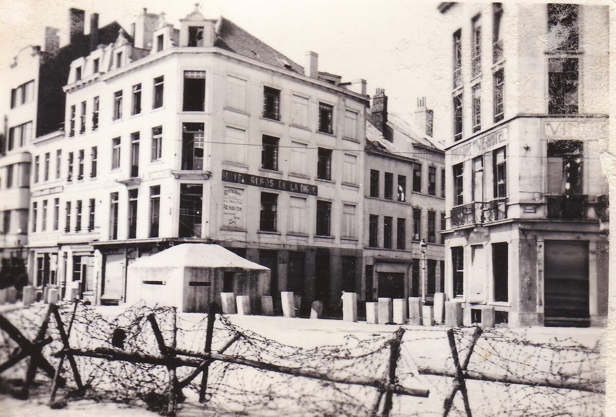 Foto : 9 x 6 cm. - Hoek Langestraat en Visserskaai. Links hotel "Repos de la Digue" en rechts hotel "Vindictive".