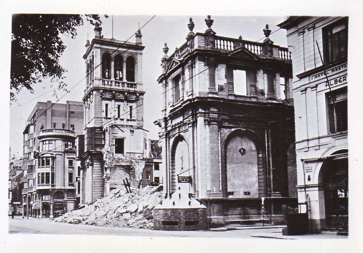 Foto : 9.5 x 6.5 cm. - Het vernielde postgebouw in de Hendrik Serruyslaan.