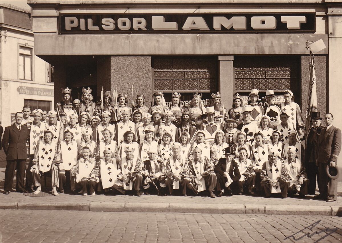 De Oostendse folkloristische vereniging "Kaartspel" voor hun lokaal :Cafe Mon Plaisir hoek Torhoutse Steenweg en Jules Peurquaetstraat.