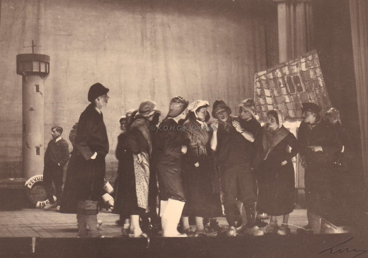 Vissersscene uit de Oostendse Revue. Decor de Vlaggestok (t.t.z. de eerste vuurtoren).