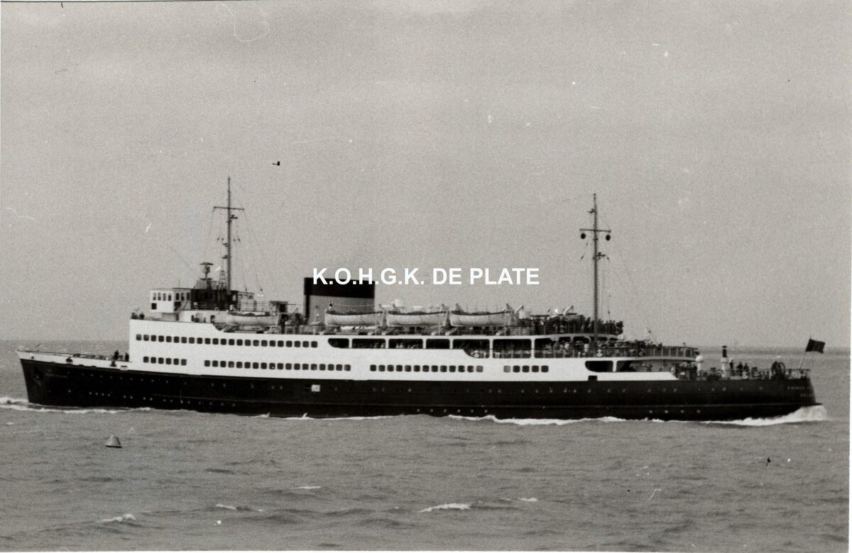 Formaat : 16,5 x 10,5 cm. - Eind juli 1948, kwam het zusterschip van de "Koning Albert" de vloot versterken. Gebouwd op de scheepswerf Cockerill (Hoboken) en te water gelaten op 11 oktober 1947. Het was volledig identisch aan de "Koning Albert", op de inwendige decoratie na. De beide schepen waren uitgerust met hetzelfde type motoren als de "Prins Albert", namelijk twee Sulzer dieselmotoren van het type SD 58/84, met een nominaal vermogen van 7500 P.K. per motor. Het was ingericht voor 1638 passagiers