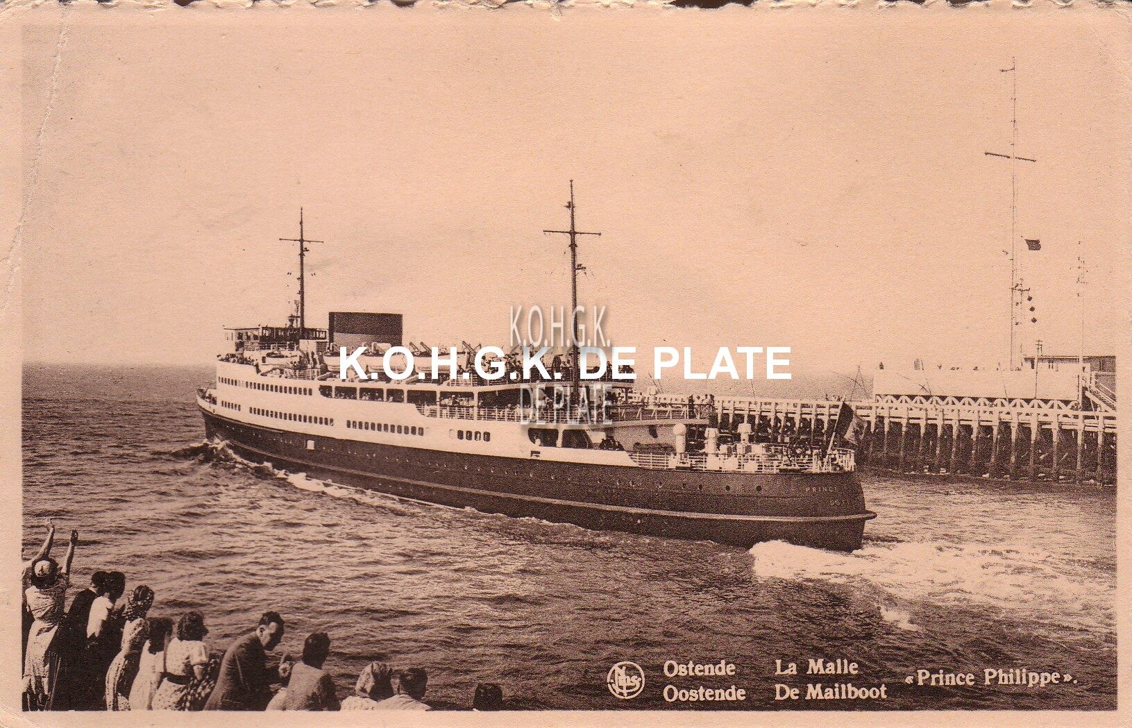Nels. - Ostende - La Malle. Oostende - De Mailboot "Prince Philippe. - De pakketboot "Prince Philippe" verlaat de haven van Oostende. Vooraan, het Weststaketsel en achteraan het Ooststaketsel en tijseinpost