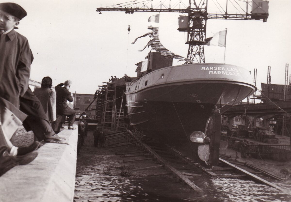 De Marseillais 3 gebouwd voor rekening van de rederij Chambon op de helling van de scheepswerf Beliard-Crighton & C°, klaar voor de stapelloop.